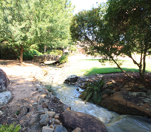 - Landscaped creek channel provides a natural border.